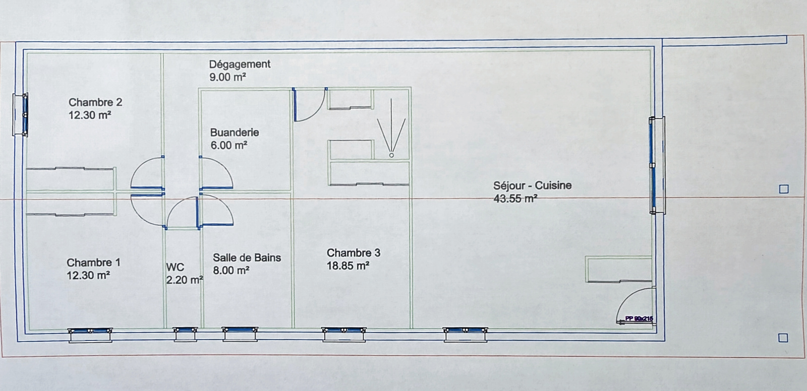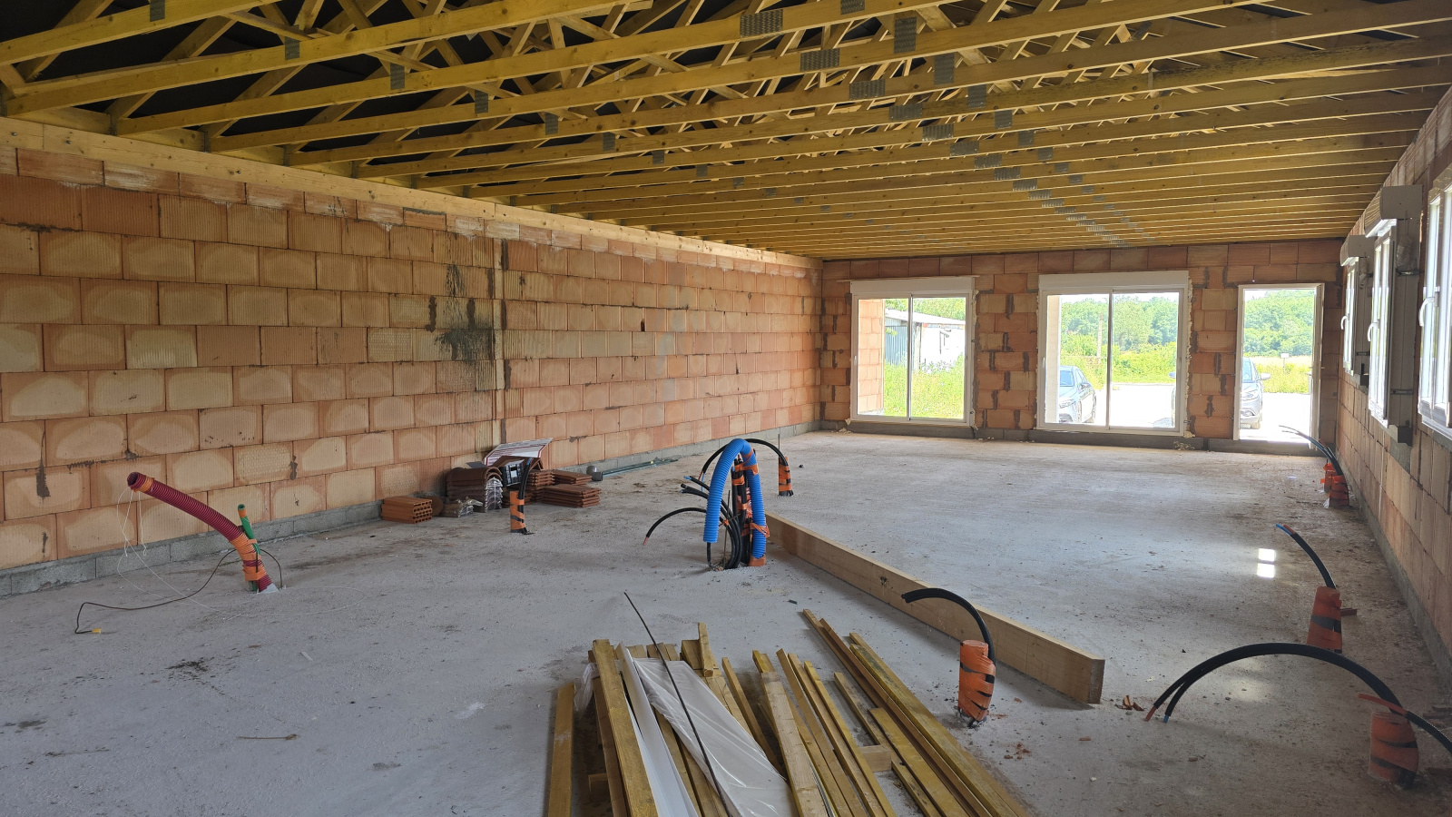 Sur le projet de constuction était prévu cuisine ouverte sur le séjour, salle de bain , wc , 3 chambres dont une suite parentale, une buanderie et une terrasse couverte.