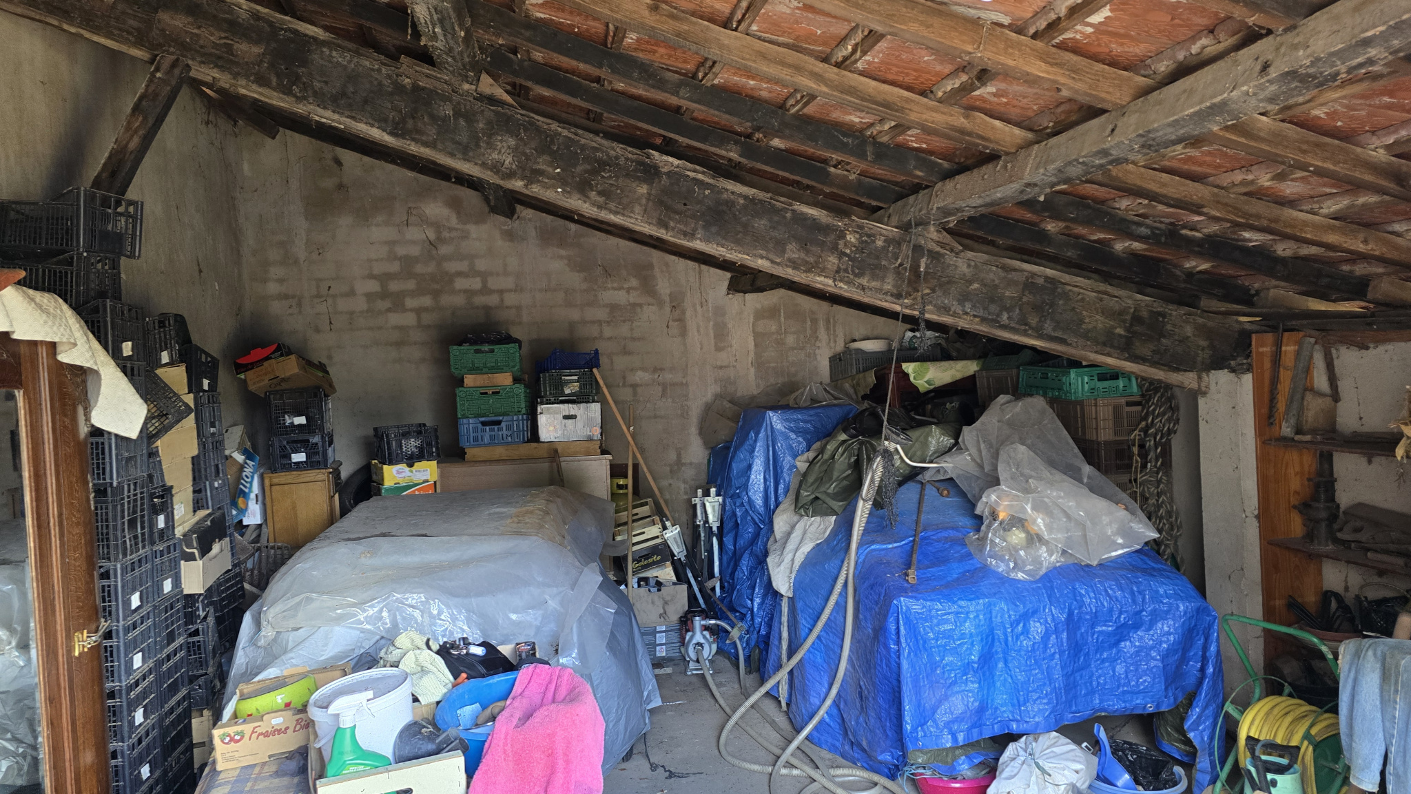 À l’extérieur, la propriété offre de nombreuses dépendances, dont deux garages, un hangar, et divers espaces de rangement. Vous profiterez également d’un grand jardin d’environ 1000 m², idéal pour les moments de détente ou les projets d’aménagement extérieur.
